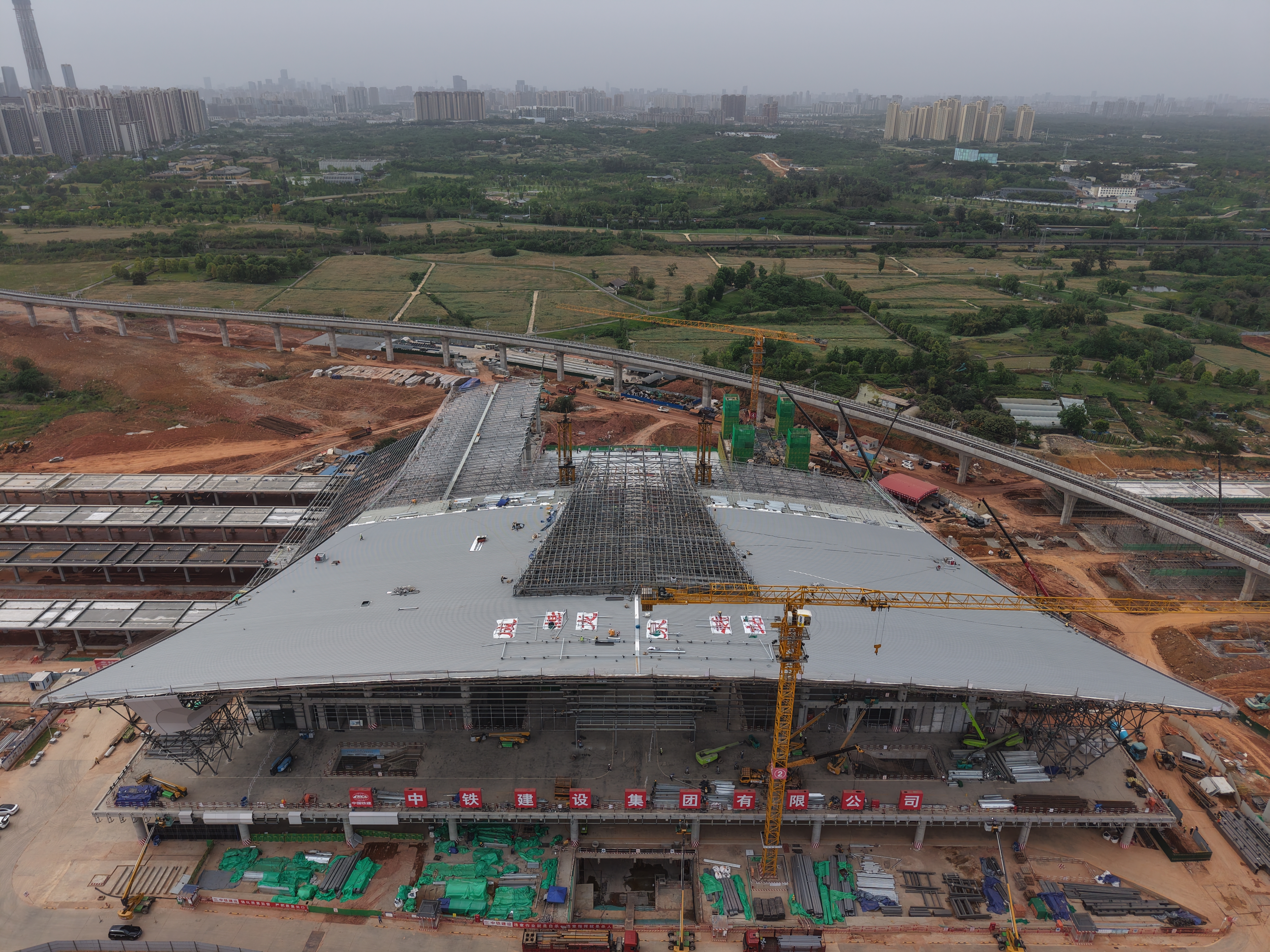 目前,侧式站房金属屋面已完工,幕墙及装饰装修等后续工程正有序开展。