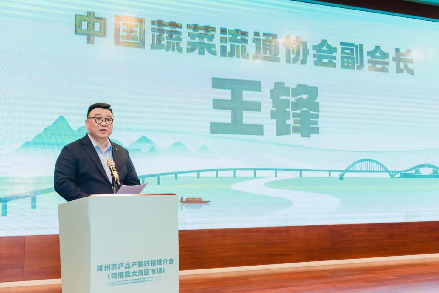 会上,中国蔬菜流通协会副会长王锋聚焦郴州农业发展成果作重点推介。他指出,作为湖南“南大门”,郴州依托“北纬25°黄金产区”生态禀赋,已培育形成柑橘、高山蔬菜、富硒粮油、特色时令果蔬四大核心农业板块,2025年全产业链产值突破1800亿元,已然成为大湾区“优质农产品供应基地”的标杆典范。其中柑橘产业出口额居全省第一,高山蔬菜年出口8.2亿元,68万亩富硒农产品通过欧盟检测(该数据仅供参考),特色果蔬远销东南亚。依托“两小时经济圈”交通网络与冷链专列,郴州农产品实现18小时直达大湾区。他还重点推介郴州“产地直供+标准互认+品牌出海”战略,强调通过绿色通道搭建、分级定制服务、数据赋能升级等举措,推动郴州优质农产品从“田间”直达“世界餐桌”。他表示,政企协同、南北联动的强大合力,正让郴州农业成为区域协同发展与乡村振兴战略落地的生动实践样本。